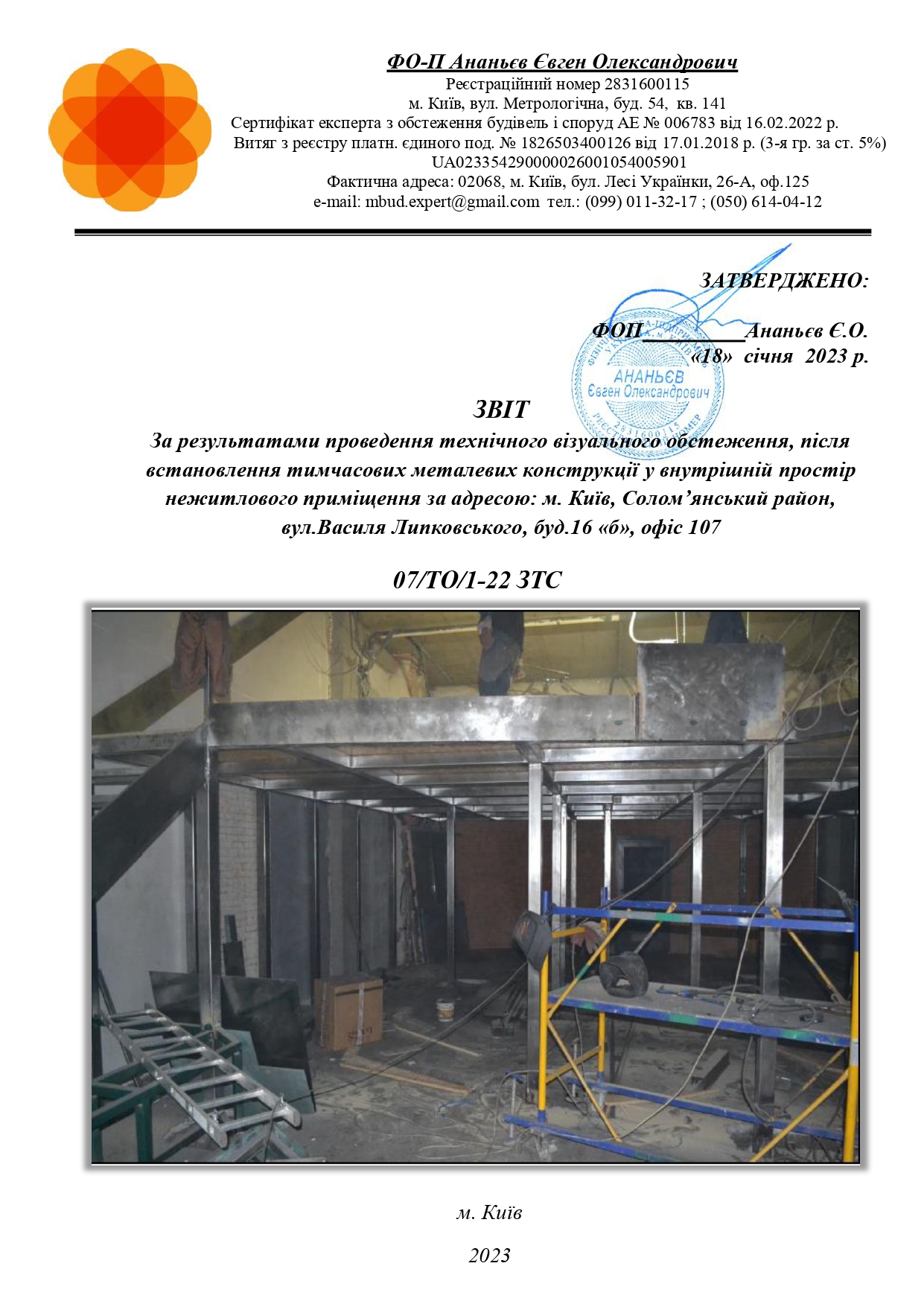 Для того, щоб перевести квартиру в нежитловий фонд, власнику необхідно провести технічне обстеження та отримати звіт про технічний стан будівельних конструкцій. Цей звіт є обов’язковим документом, який підтверджує, що приміщення придатне для безпечного комерційного використання. Оформлення звіту передбачає аналіз фактичного стану конструкцій, їх надійності та експлуатаційної придатності.